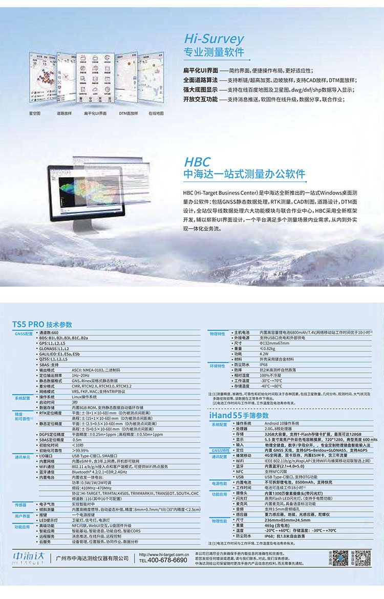 中海達RTKTS5Pro工程版,輕便小巧、快速測量,中海達集團旗下北斗海達品牌全新一代RTK-TS5Pro工程版,以輕便小巧為理念,讓操作變得更簡單,快速提升測量效率。機身小巧/支持北斗三號...
